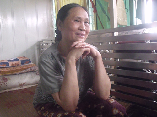 Đó là cô Nguyễn Thị Cải, 61 tuổi, kém bố nuôi 16 tuổi, học hết lớp bảy và không dùng quen điện thoại di động.