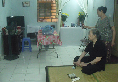 15 năm trước, tôi chuyển sang làm nghề chăm sóc người già ốm. Trước bố Thịnh, tôi chăm sóc 6 mẹ khác, cả sáu mẹ đều mất trên tay tôi. Ba năm nay, tôi được đón về đây ở và chăm sóc riêng cho bố Thịnh. Gia đình nhận tôi là con nuôi, chị nuôi, em nuôi.