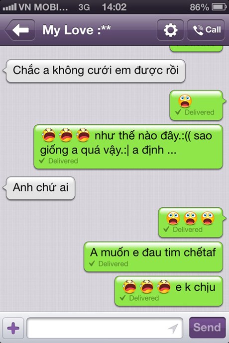 "Nhiều bạn cứ nói mình là nhìn lầm r bảo mình thế này thế khác...mình đã liên lạc và hỏi trực tiếp a ấy.. các bạn cứ bảo không phải tiếp đi...:| a ấy đã xác nhận trong bức hình là a ấy...a ấy còn nói nếu a ấy không lấy mình được thì sao.....:(( Thực sự h k biết sao nữa...
