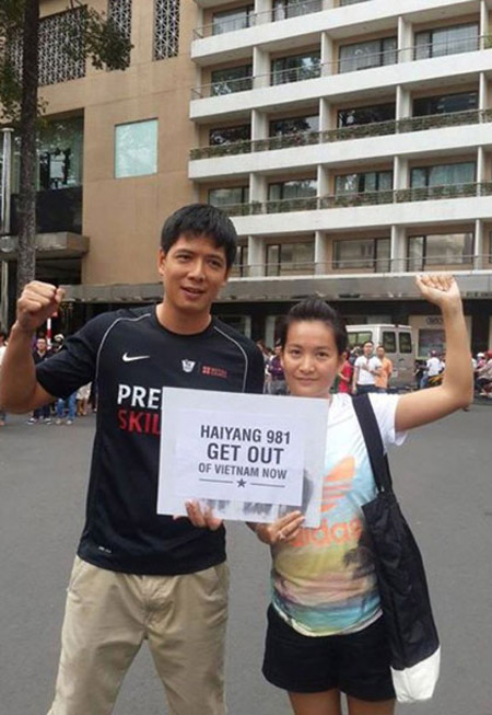Sáng 11/5, diễn viên Bình Minh và vợ đã hòa mình cùng dòng người biểu tình phản đối hành vi trái phép của Trung Quốc. Đi trên tuyến đường gần Nhà hát Thành phố, họ giơ biểu ngữ ghi dòng chữ bằng tiếng Anh: “Đưa giàn khoan Haiyang ra khỏi Việt Nam ngay!”. Nam diễn viên cũng khoác lên mình lá cờ đỏ sao vàng bày tỏ lòng yêu nước trước sự chứng kiến của rất nhiều người Việt Nam và nước ngoài.