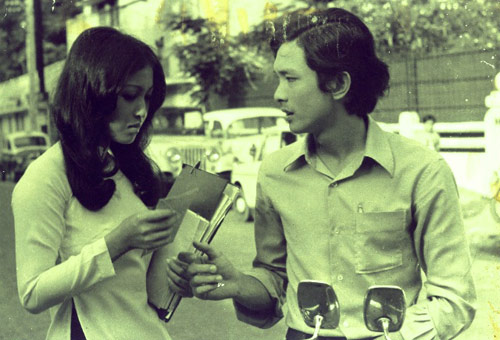 Khi học đại học, anh đã gặp gỡ và yêu cô sinh viên cùng trường cũng rất đam mê ca hát là Bích Trâm. Ảnh chụp Chánh Tín và Bích Trâm tại khuôn viên trường Luật.