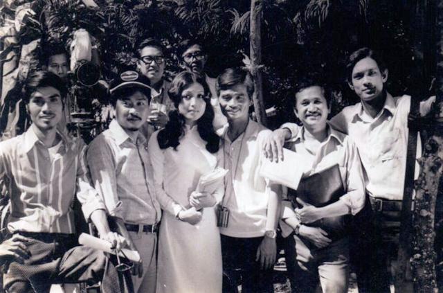 Chánh Tín (ngoài cùng bên phải) cùng đoàn phim Vĩnh biệt mùa hè của đạo diễn Lê Mộng Hoàng