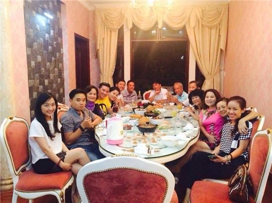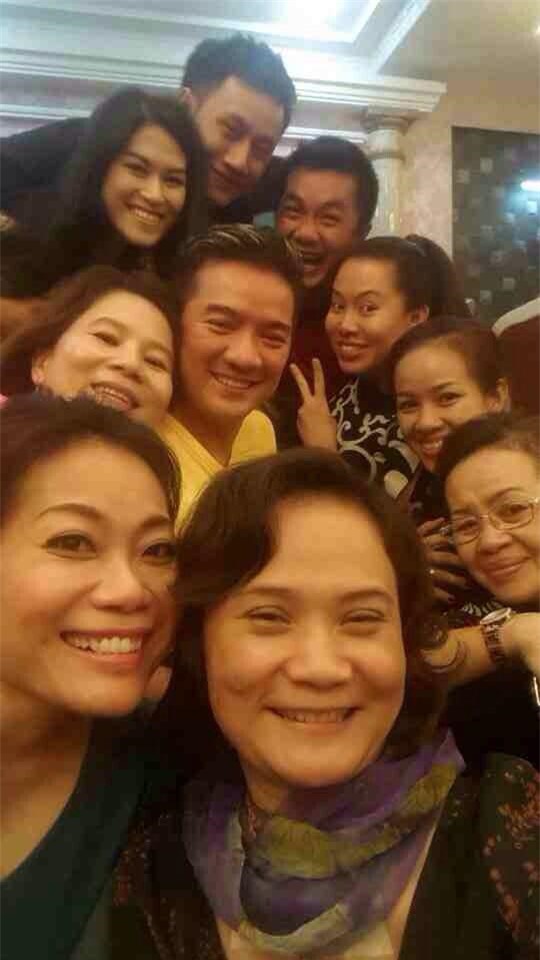 Đàm Vinh Hưng vui vẻ chụp hình khi được gặp mặt những người thân yêu trong gia đình.