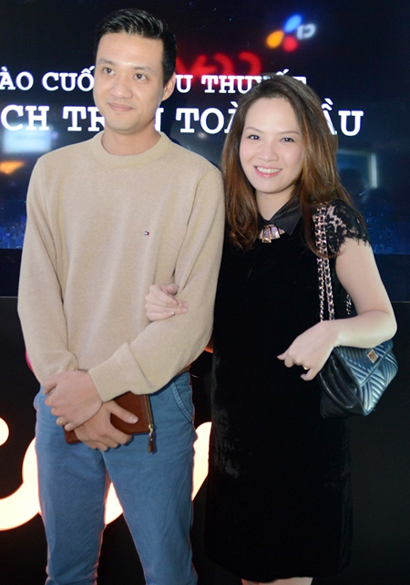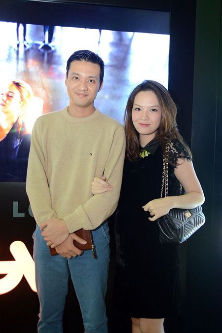 Tối 26/3, vợ chồng Khải Anh - Đan Lê khoác tay tình tứ xuất hiện tại buổi công chiếu phim `Noah` tại một cụm rạp ở Hà Nội. Diễn viên `Cầu vồng tình yêu` diện váy đen để che bụng bầu khoảng 7 tháng