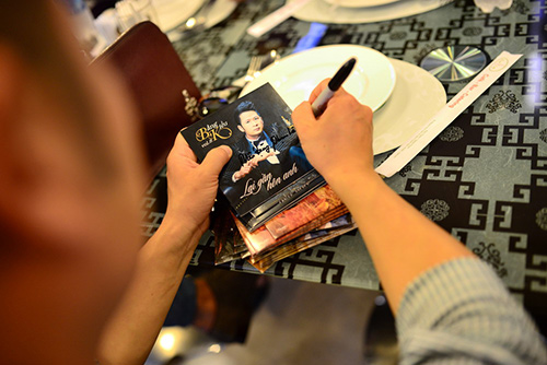 Anh Bầu tự tay ký tặng đĩa có đề tên của từng bạn