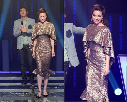 Hồ Ngọc Hà rất yêu thích những mẫu váy trơn đơn giản với điểm nhấn ánh kim thời thượng