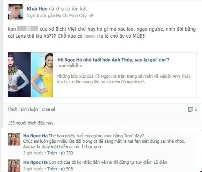 Nhiều người tỏ ra vô cùng bất ngờ trước những lời lẽ của nữ ca sĩ bởi từ trước đến nay, người ta vốn biết đến một Hồ Ngọc Hà luôn bình tĩnh và ứng xử khôn khéo trước mọi tình huống. Một số người cho rằng, những lời khẩu chiến trên Facebook là do admin của cô viết, còn nữ ca sĩ xinh đẹp hiện đang thực hiện MV mới nhất tại Đà Lạt.