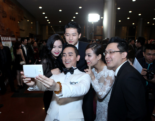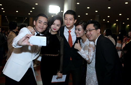 Cô và đoàn phim Thần tượng chụp ảnh selca (ảnh tự sướng) theo trào lưu của các ngôi sao Oscar