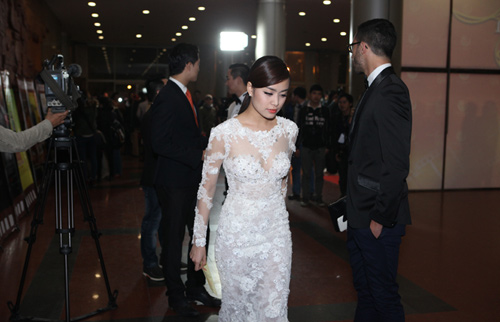Xuất hiện với một mái tóc dài óng ả và trang điểm không cầu kỳ nhưng Hoàng Thùy Linh vẫn tôn được nét đẹp riêng của mình. Bộ váy ren chất liệu xuyên thấu giúp Thùy Linh vừa khoe được đường cong cơ thể mà không bị hớ hênh hay quá lố. Trang phục gợi cảm giúp ghi điểm cho nữ diễn viên thần tượng.