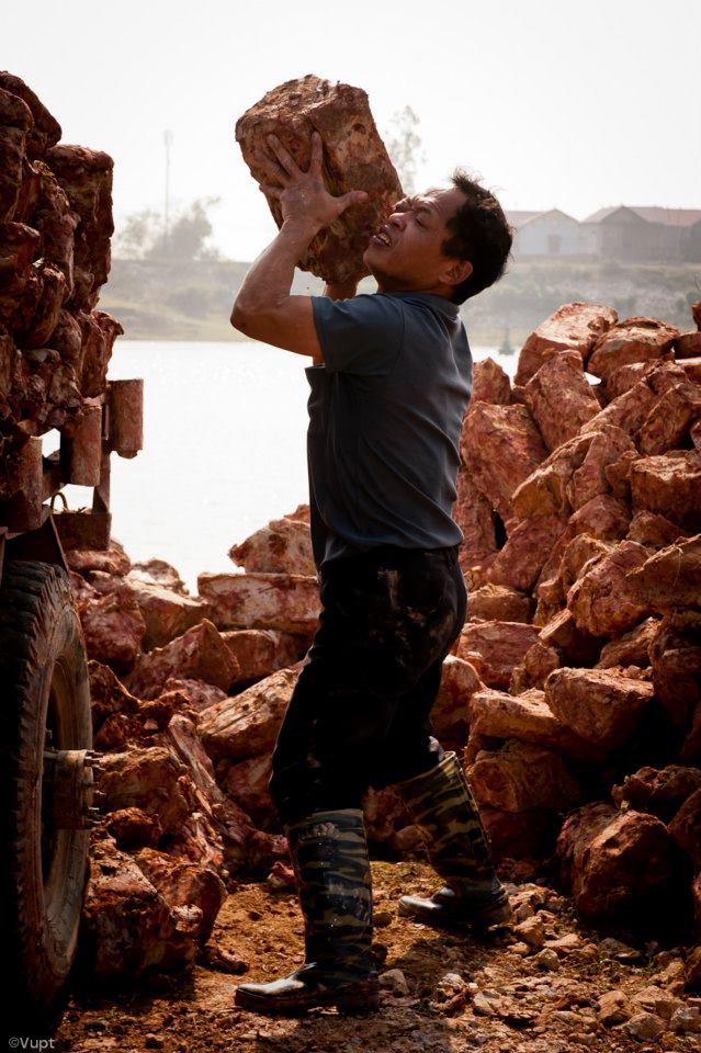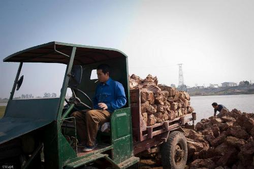 Tuy nhiên đây là công việc rất vất vả, đòi hỏi sức khỏe dẻo dai và bền bỉ. Đất sét có màu hồng nhạt được lấy ở làng Thống Vát, Cung Kiệm (xã Việt Thống), sau khi cập bến sẽ được chuyển về nhà bằng xe công nông.