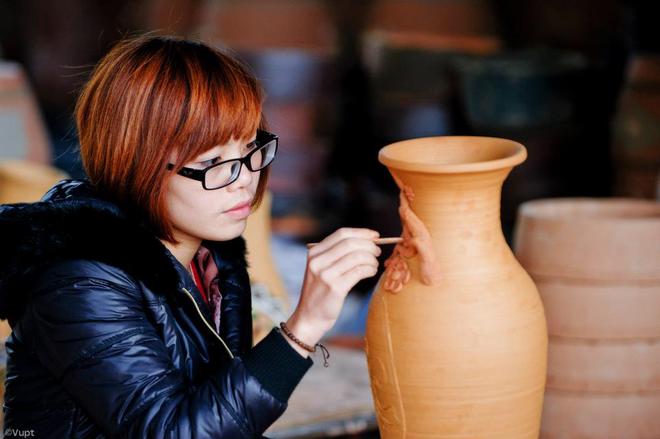 Công đoạn vuốt tạo phôi gốm đòi hỏi nghệ nhân ở đây phải thật khéo léo, tỉ mỉ.