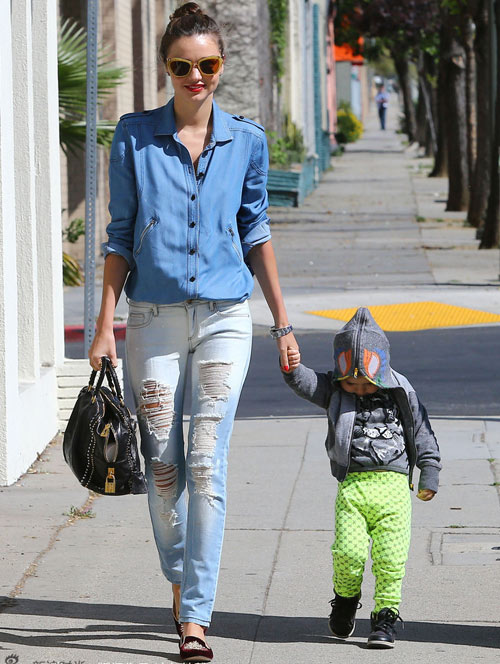 Phối hợp jeans với sơ mi denim như Miranda Kerr cũng là một cách để chứng tỏ sự sành điệu của bạn