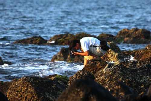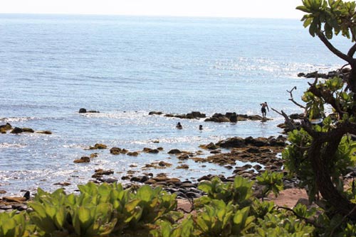 Nắng sớm rất chói chang chiếu xuống ghềnh đá vươn dài ra biển