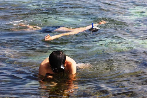 Nhiều người hòa mình vào biển để ngắm những rặng san hô tuyệt đẹp dưới nước