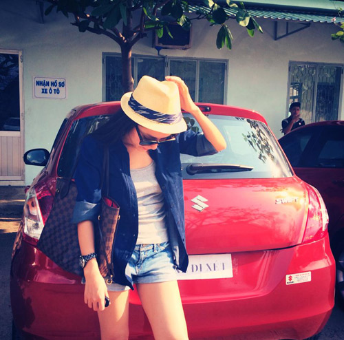 Phương Linh đơn giản và khỏe khoắn với áo denim và mũ lưỡi trai
