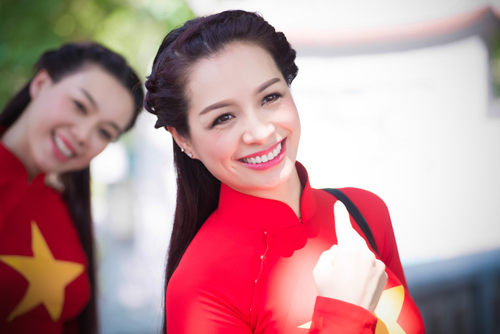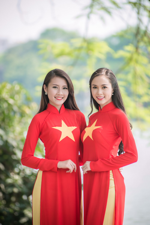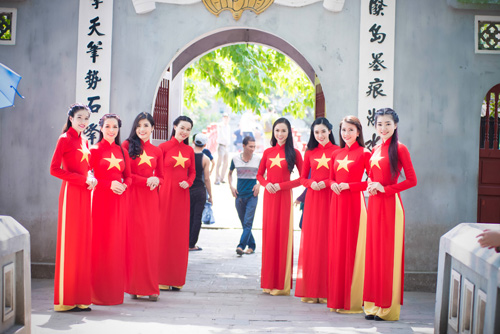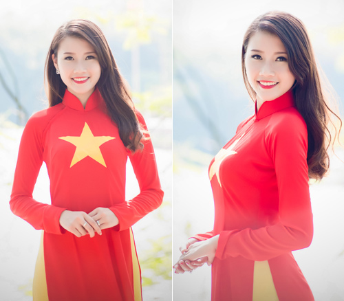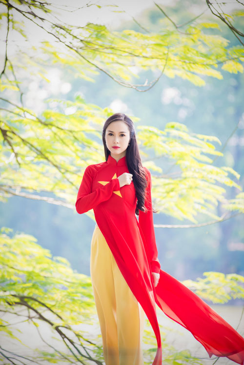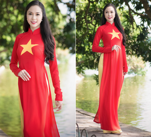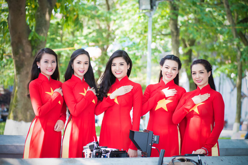 Người đẹp Việt mặc áo dài đỏ sao Vàng