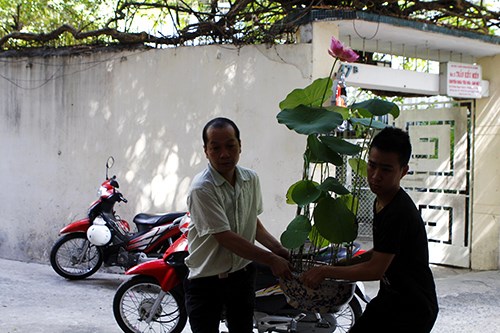 Chậu hoa sen được đặt bên cạnh tượng của Trịnh Công Sơn
