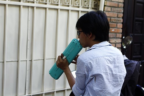 Một vài bạn trẻ đứng trước nhà cố nhạc sĩ chơi những bản nhạc Trịnh nổi tiếng