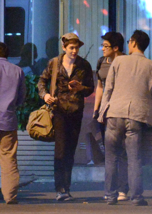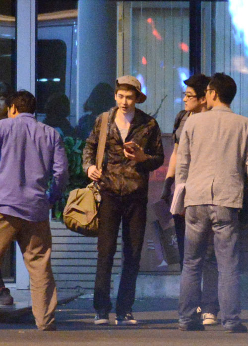 Nichkhun đứng lại hồi lâu trò chuyện cùng quản lý trước khi di chuyển lên xe