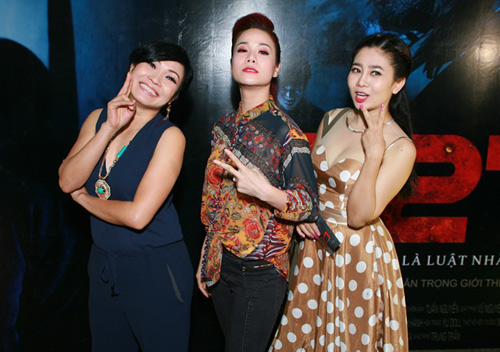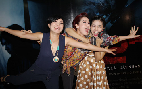 Tối qua (7/4), tại buổi công chiếu phim kinh dị 7.27, chị Chanh đã khiến bầu không khí trở nên "náo loạn" khi liên tục quậy tưng bừng cùng đàn em Nhật Kim Anh, Mai Phương.