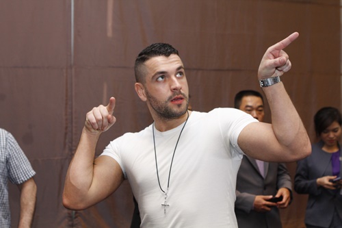 Shayne Ward diện trang phục đơn giản, năng động khi đến với buổi họp báo tại Việt Nam