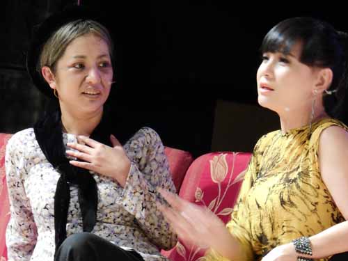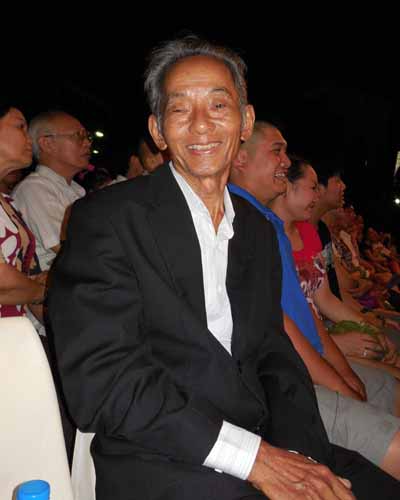 Ông Trần Đình Thai, cha của Thúy Nga xem con gái diễn tại sân khấu Trống Đồng