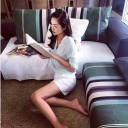 Ngọc nữ khoe nội thất nhà sang trọng khi mặc short ngắn khoe chân thẳng nuột.