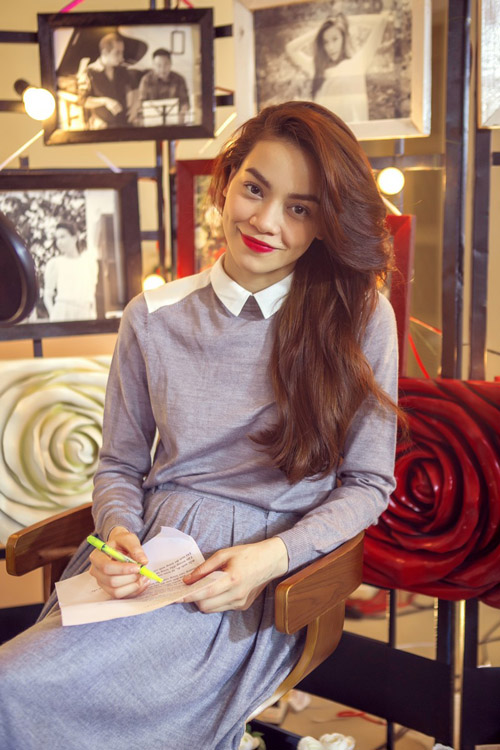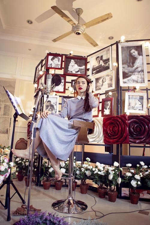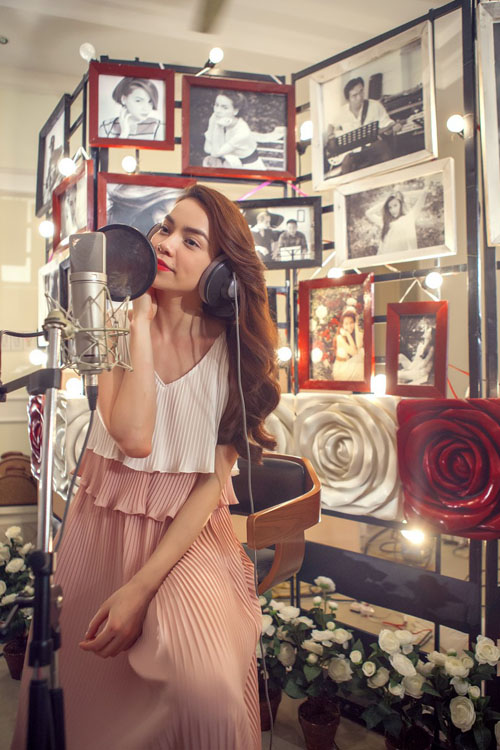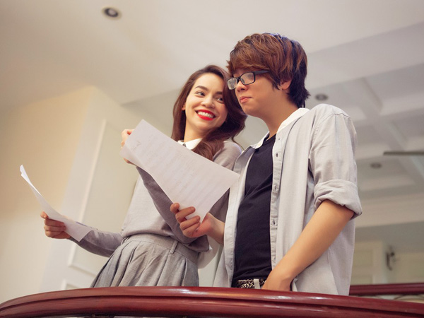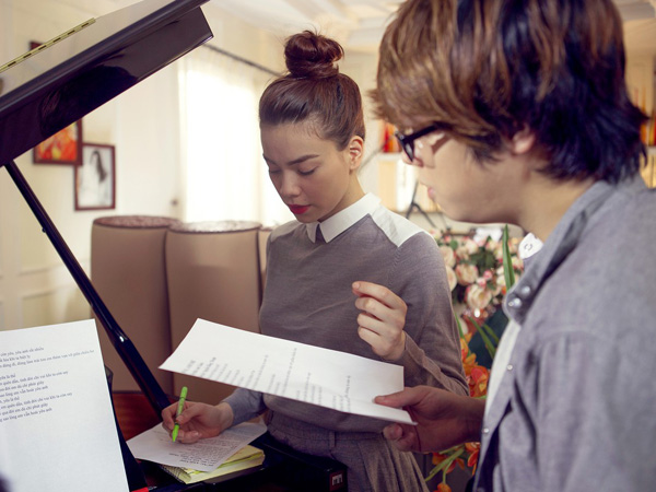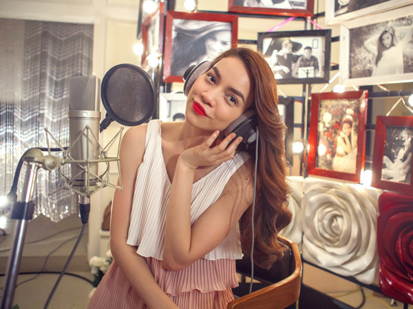 Hà Hồ xinh đẹp thu âm cùng học trò Bùi Anh Tuấn.