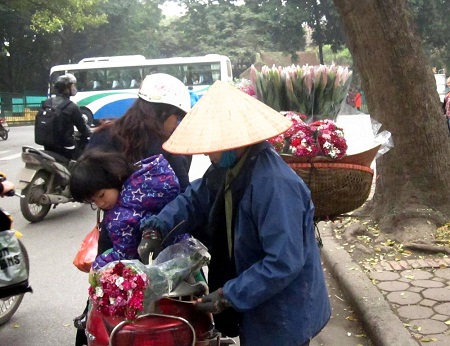 Ngày nắng cũng như ngày mưa, những con người này vẫn lặng lẽ, âm thầm chở những khóm hoa đi khắp các ngõ ngách Hà thành. Mong muốn có thể có thêm thu nhập trang trải cho cuộc sống, lo thêm miếng cơm, tấm áo cho con nhỏ ở quê.
