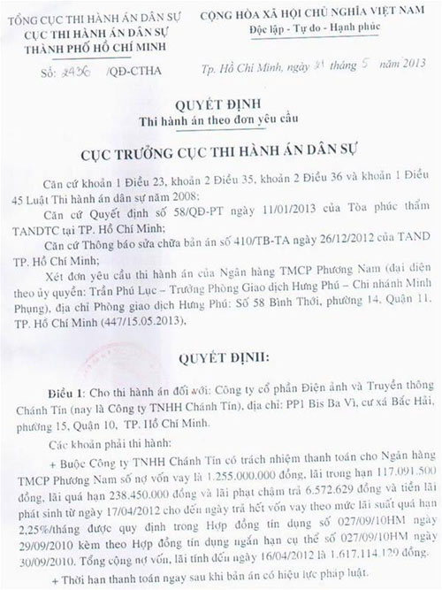 Anh Quân Anh khẳng định: “Bây giờ Chánh Tín đã không còn gì để trả nợ ngân hàng. Chúng tôi phải tự lo, tự chịu những gì mà chúng tôi thực tế không cầm trong tay, không sử dụng 1 đồng nào trong món vay đó mà còn phải trả lãi giùm người khác.”